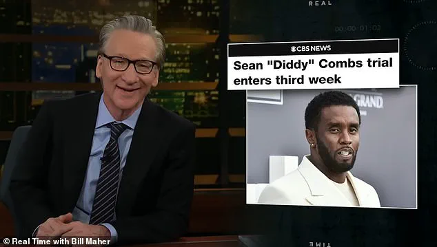 The context for Maher’s remarks is the high-profile trial of Diddy, who faces multiple charges, including racketeering and sexual abuse.