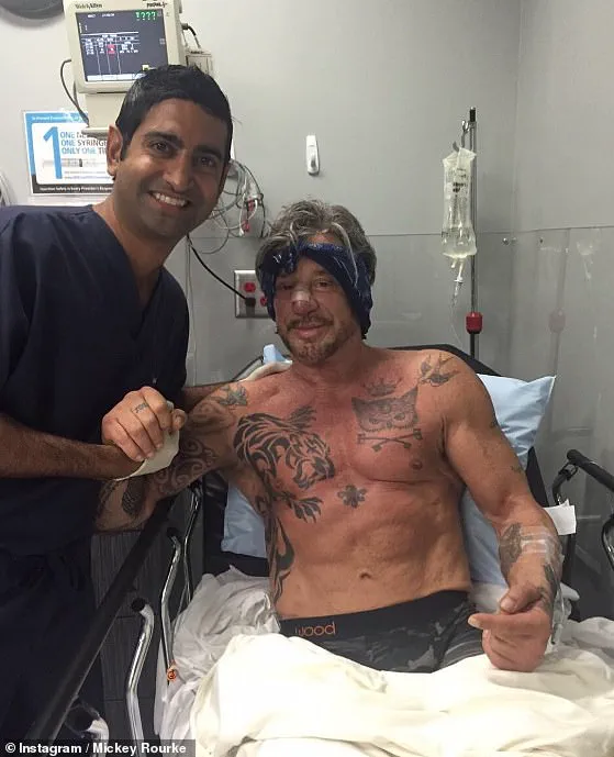 In 2017, Mickey also took to Instagram himself to reveal he had undergone a nose job. ‘Moments after nose surgery with Dr. Dhir,’ he penned, along with a picture of himself bandaged up in a hospital bed