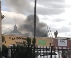 The encampment, located on the roof of her building in Huntington Park, has caused repeated fires, stolen electricity, and damaged critical infrastructure, leaving Soliman and her staff in a state of perpetual crisis. ‘We are living in hell,’ she told KTLA News, describing the relentless struggle that has eroded her sense of security and purpose.