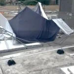 Clothes, debris, and discarded items have become a constant sight on the rooftop, a stark reminder of the encampment’s grip on the space.
