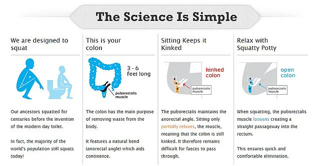 He explains: ‘If a growth inside the colon grows big enough it can block the flow of your stool, which can cause constipation and bleeding.’ This suggests that while squatting toilets might offer benefits, there are also other factors to consider when assessing bowel habits.