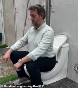 Some people have low-hanging fruit.’ A third echoed similar sentiments: ‘I’m sure it’s perfect…perfectly awful, such that you’re either (quite literally) teabagging the water or you’ll get vomit-inducing splashback because the water is so low.’nnKelsey Trull, a digestive health expert, explains that the squat position is ideal for bowel movements as it relaxes muscles enough to straighten out the intestine and facilitate waste passage.