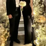 One notable appearance was at a wedding over Christmas where she looked radiant in an elegant black gown with cut-out details and flowing fabric from her shoulders.
