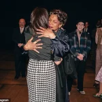 The moment captured on camera showed Meghan embracing McDonald while staring directly into her eyes, surrounded by other cast members.