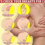Regular self-examinations are critical, experts say. ‘Checking your breasts should be part of your monthly routine so you notice any unusual changes,’ they advise. ‘Simply rub and feel from top to bottom, in semi-circles and in a circular motion around your breast tissue to identify any abnormalities.’