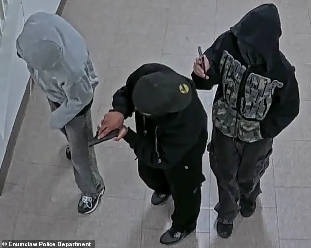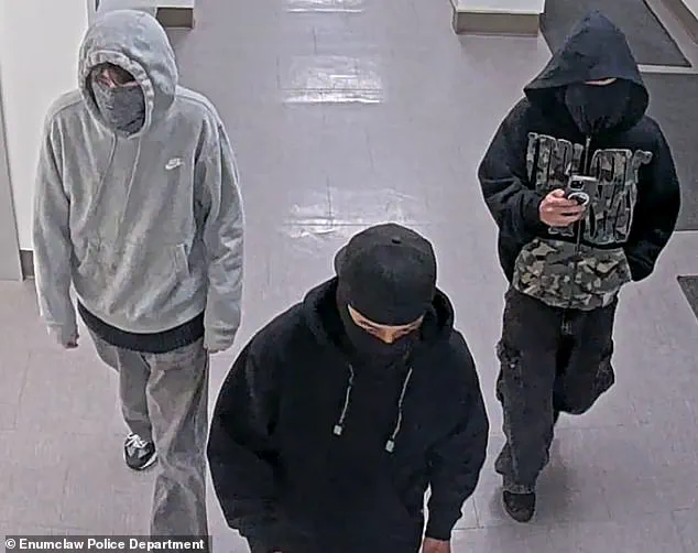 Terrifying surveillance footage has emerged, capturing the chilling moment three masked and armed individuals conducted what authorities now describe as a ‘school shooting dry run’ at Enumclaw High School in Washington.