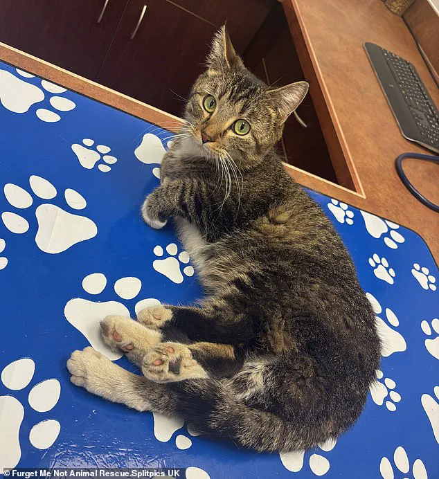 Post-surgery, the cat showed remarkable improvement, moving freely and resting comfortably for the first time.
