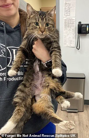 The cat, later named Bitsy, was brought in to the Furget Me Not Animal Rescue in Edmonton, Alberta in April 2025