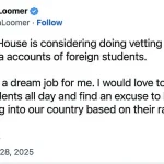 Loomer, known for her polarizing rhetoric and history of social media bans, has openly expressed her enthusiasm for a role in the administration’s new immigration policies. ‘Sounds like a dream job for me,’ she tweeted, ‘I would love to research foreign students all day and find an excuse to block them from coming into our country based on their radicalism.