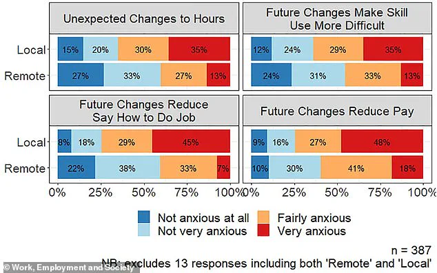 Similarly, 74% of local workers felt anxious about having limited control over their job responsibilities, while only 40% of remote workers shared the same concern.