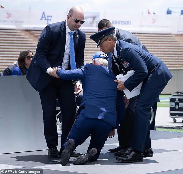 Make no mistake: This book about the Biden health cover-up is just another cover-up. (Pictured: Biden is helped up after falling during the graduation ceremony at the United States Air Force Academy in 2023).