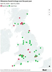According to MailOnline analysis of data from Wedinos, the UK’s sole drug testing facility, two-thirds of Nitazene-positive samples were legal medications intended for purchase, such as Valium (diazepam).