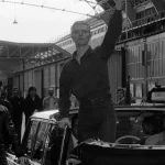 The image, which would later become a flashpoint in David Bowie’s career, was captured during a moment of public celebration in 1976.
