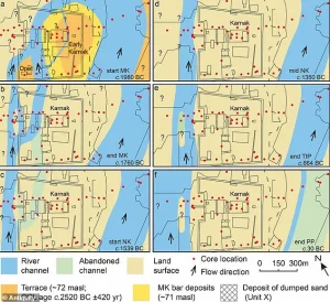 The new study, published in the journal Antiquity, summarizes the evolution of Karnak as ‘from a small island to one of the defining institutions of Ancient Egypt.’ The researchers highlight that the temple’s development was not merely a product of human ambition but was deeply intertwined with the natural environment. ‘Activity there demonstrates a coupling between the natural environment and the religious, functional and constructional aspects of the temple,’ authors conclude.