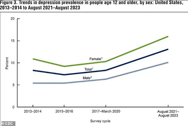 The rise in depression rates has also been observed in both males and females, suggesting a widespread issue that transcends gender.