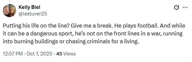 The user who sparked the debate later clarified that her comments were not meant to diminish the risks of football, but rather to emphasize that Kelce’s profession does not equate to the dangers faced by military personnel or first responders.
