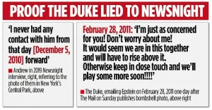 Prince Andrew secretly told paedophile Jeffrey Epstein ‘we are in this together’ a day after The Mail on Sunday first published this picture of the Duke with his alleged teenage sex victim, Virginia Giuffre, a bombshell email reveals
