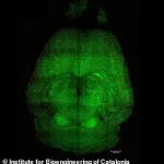 Light sheet fluorescence microscope image of mouse brain 12 hours after being treated with nanoparticles