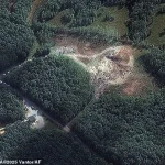 A chilling satellite image captured the aftermath of a catastrophic explosion at a Tennessee explosives manufacturing facility, with local authorities confirming that the incident left ‘no survivors.’ The blast occurred at the Accurate Energetic Systems plant in Bucksnort, approximately 7:50 a.m. local time on Friday, and has since become the focus of a grim search for human remains.