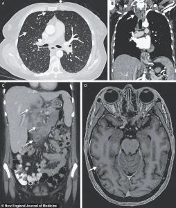 Further imaging revealed lesions in multiple organs, including the liver, lymph nodes, pancreas, and brain—indications of a systemic infection.