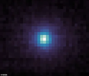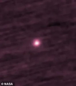 NASA explained that the image, captured at a resolution of roughly 19 miles (30 kilometers) per pixel, shows the comet’s coma—a cloud of dust and ice shed as it traveled past Mars. ‘That ball is a cloud of dust and ice called the coma, which the comet shed as it continued its trajectory past Mars,’ the agency stated in a detailed analysis.