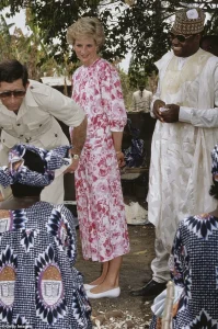 Other notable designs included a custom-made pink suit and a pink and white floral patterned dress she wore during a visit to Nigeria in 1990.