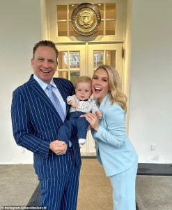 Her husband, 32 years her senior, has also drawn public attention, with Leavitt previously admitting to her parents’ initial difficulty in accepting their relationship. ‘Once they got to know him and saw who he is as a man, and his character and how much he adores me, I think it became quite easy for them,’ she said, highlighting the evolving dynamics within her family.