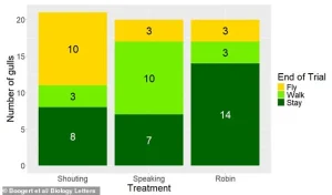 Neeltje Boogert, a research fellow in behavioural ecology, explained that the distinction between speaking and shouting was critical. ‘When trying to scare off a gull that’s trying to steal your food, talking might stop them in their tracks but shouting is more effective at making them fly away,’ she said.
