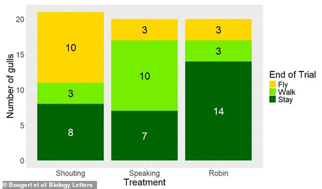 Boogert said. ‘But the difference was that the gulls were more likely to fly away at the shouting and more likely to walk away at the speaking.’ The study underscores the importance of vocal tone in influencing animal behavior, offering a practical and accessible solution for those who find themselves at odds with seagulls during their seaside excursions.