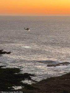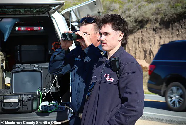 The search resumed on Sunday, with teams combing the rocky terrain and scanning the horizon with binoculars, as photos shared by the Monterey County Sheriff’s Office captured the grim determination of rescuers.