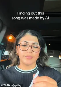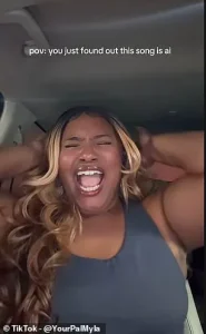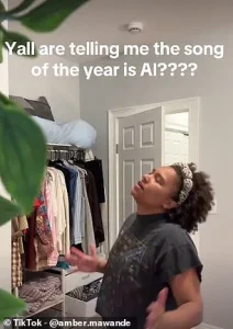 Some have expressed feelings of betrayal, with one TikTok user writing: ‘I felt so deceived when I found out this song has AI vocals… It’s so viral, it’s so disheartening to see.’ Others, however, have taken a more forward-looking stance, arguing that AI is inevitable in the industry.