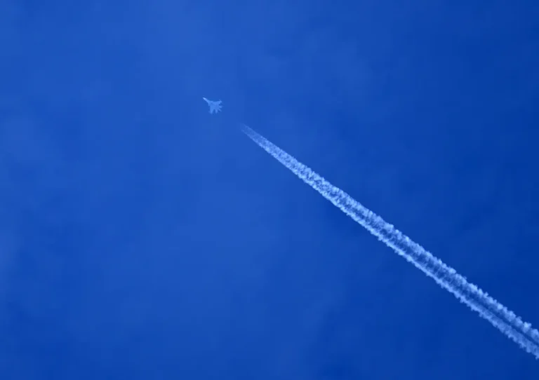 The fighter jet, a Soviet-era aircraft known for its agility and combat prowess, is seen performing sharp turns and sudden altitude changes in an attempt to evade the incoming projectile.