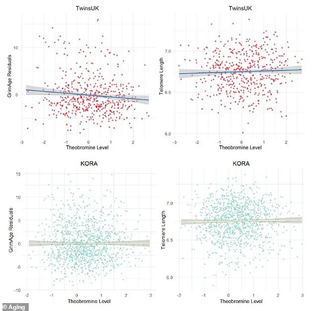 The study, which analyzed data from over 1,600 individuals across two European cohorts, found that those with higher levels of theobromine in their blood exhibited a biological age lower than their chronological age.