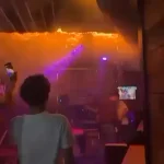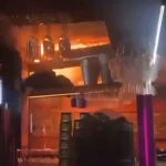 Dramatic footage captured on mobile phones shows flames licking the ceiling, spreading like wildfire as the club’s speakers blared music from the chaos below.