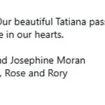 She will always be in our hearts,’ the post reads, signed by ‘George, Edwin and Josephine Moran, Ed, Caroline, Jack, Rose and Rory’.