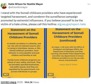 In a pointed message, she stated, “I stand with the Somali childcare providers who have experienced targeted harassment, and condemn the surveillance campaign promoted by extremist influencers.” Her comments have been interpreted by some as an indirect critique of Trump’s administration, which has faced criticism for its handling of similar controversies, including the use of federal investigations against political opponents.