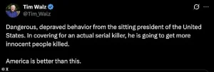 Walz called Trump’s comments ‘dangerous, depraved behavior from the sitting president of the United States,’ emphasizing that the former president was ‘covering for an actual serial killer’ and risking further violence. ‘America is better than this,’ Walz said, adding that Trump’s rhetoric could endanger more lives.