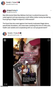 Trump, who was reelected in 2024 and sworn in on January 20, 2025, shared a post on his Truth Social platform suggesting that Hortman’s murder was tied to her opposition to a policy that would have allowed undocumented adults to access MinnesotaCare.