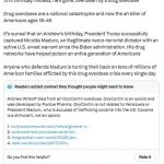 It’s surreal that on Andrew’s birthday, President Trump successfully captured Nicolás Maduro, an illegitimate narco-terrorist dictator with an active U.S. arrest warrant since the Biden administration.’ The post concluded with a plea: ‘His drug networks have helped poison an entire generation of Americans.