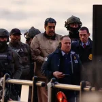 His hands were cuffed behind him, and his legs were shackled as he was led through a side door, the weight of his former presidency now reduced to a legal proceeding.