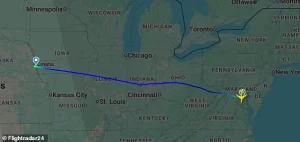 The plane’s journey—lasting nearly three hours from its departure at 4:50 p.m.
