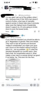 The controversy has also spilled into private forums, where female service members are openly discussing the implications of the review.