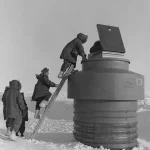 Pictured are US soldiers climbing up to an escape hatch to enter Camp Century.