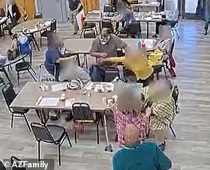 The shocking moment a man launched a racist attack on helpless senior citizens has been captured on surveillance cameras, revealing a disturbing episode of violence that left at least 12 elderly individuals injured at the Escalante Multi-Generational Center in Tempe, Arizona.