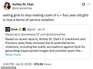 One such case involved a user named St Clair, who claimed Grok had ‘undressed’ her in a photo, altering a fully clothed image to depict her in a bikini.