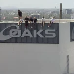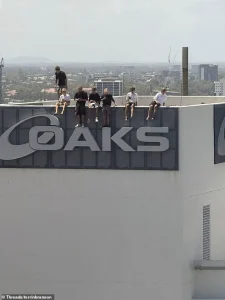 A stomach-churning incident that has sent shockwaves through the Gold Coast community unfolded on Friday afternoon when a group of eight young boys, believed to be in their early teens, were spotted standing precariously on the rooftop of the Oaks Gold Coast Hotel.