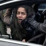 Rahman attempted to drive away, but multiple ICE agents surrounded her car, detaining her after at least three male officials shoved her against the vehicle and handcuffed her.