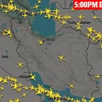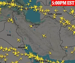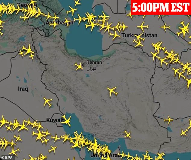 Flight radar data showed a dramatic drop in air traffic over Iran as the order took effect, with the NOTAM issued at 5:19 p.m.