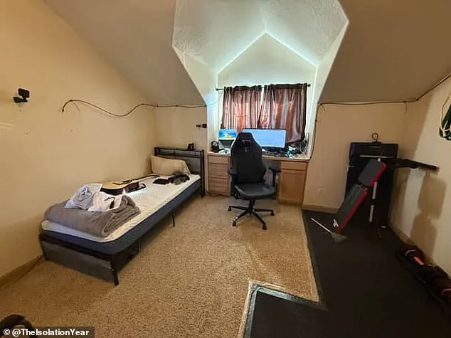 With a $100 bed and $1,500 worth of cameras, he has transformed a spare room into what he calls an ‘isolation room’—a space meticulously designed to track his physical and mental transformation over the next year. ‘I’ve foregone some personal comforts, but I’m going to make sure that it’s documented really well,’ he said, his voice steady but tinged with determination.