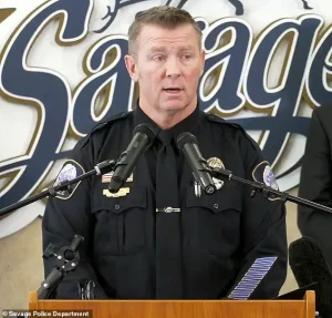 During a press conference held by Savage Police Chief Brady Juell, the gravity of the situation was made clear. ‘Theah Russell has confessed to the attempted murder of our first victim on two occasions and to the murder of Harvey Muklebust,’ Juell stated, his voice heavy with the weight of the investigation.